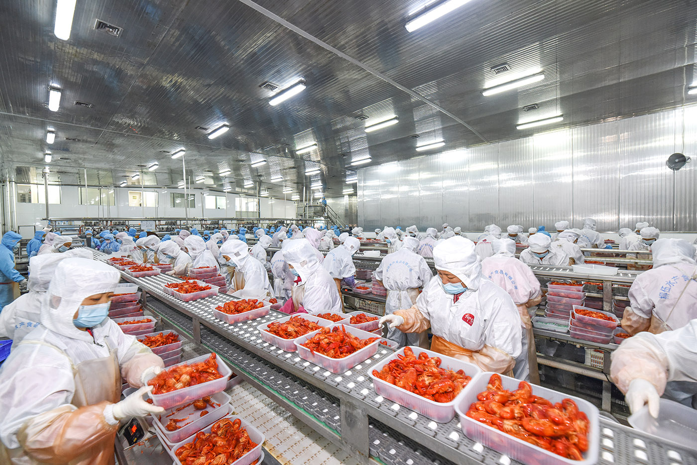 公司專業從事淡水小龍蝦、冷凍魚糜等淡水水產品加工,擁有集養殖、科研、加工、銷售為一體的完整產業鏈。為全面提升魚蝦產業綜合實力,實現傳統養殖向現代化養殖的發展,公司按照規模化、標準化、集約化的發展思路,重點打造了“秀河村萬畝蝦稻共作基地”和“徐李村白鰱魚養殖基地”。湖北新柳伍食品集團有限公司在潛江市現代農業科技示范園投建的“年加工18萬噸速凍小龍蝦、速凍淡水魚食品及水產飼料”項目總投資5.5億元,占地面積230畝,建筑面積10萬平方米。在2022年4月建成投產后,可實現年銷售收入13億元以上,提供就業崗位8000人。